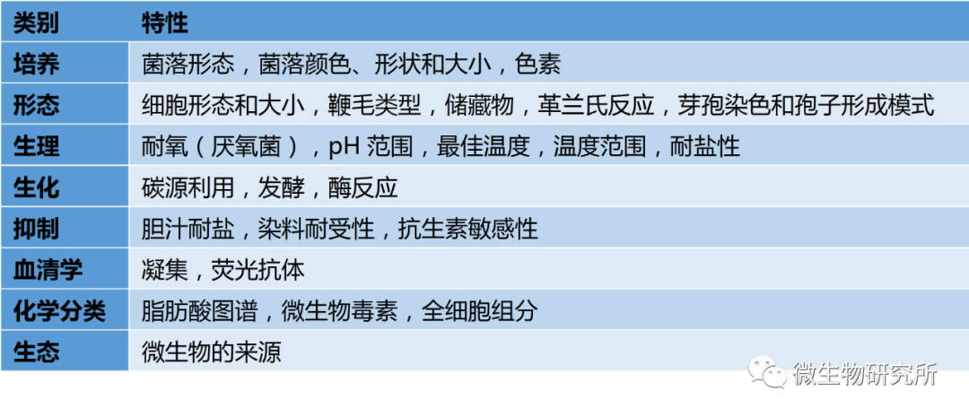 微生物鉴定可以被定义为“通过预先选择并适合于所研究问题的有限范围的测试进行微生物表征”。有一系列的技术可以用于微生物鉴定,可追溯到Christian Gram的开创性差异细胞壁染色,并扩展到最近的分子生物学技术。微生物鉴定的目的是将一种微生物分离株与另外一种分离株区分开来,并将该分离株归类于科(属)和种(这是在表型鉴定可以达到的最佳水平),甚至是特定的菌株(通过基因型鉴定;菌株是微生物的遗传变异体或亚型)。鉴定可以被认为是推定的(给出可能的属的指示)或确认的(指定到种水平的情况下)。确认的鉴定结果最常用种名称表示(例如,Pseudomonas aeruginosa铜绿假单胞杆菌)。种名通常包括两部分——属名(Pseudomonas)和种名(aeruginosa)。同样以假单胞菌为例,有时候种无法确定,鉴定结果为"Pseudomonas species",缩写为“Pseudomonas sp.”。(通常情况下,"sp."用于单数,"spp."用于复数。)商业化的微生物鉴定系统可以分为表型和基因型两大类,此外,蛋白质组学有时也会单独划分为一类,但是也有些文章认为蛋白质会受外界环境的影响,会把其归为表型一类。基因型和表型的区别在于遗传上(遗传信息)。“基因型”是指生物的全部遗传物质(基因)组成,不论表达与否;“表型”是指生物体个别或少数性状以至全部性状的表现,例如形态、发育或者行为。在不同的环境下,表型会随着环境条件发生改变。例如,微生物菌落在两种培养基上会呈现不同的颜色,具体的表型变化如表1:
